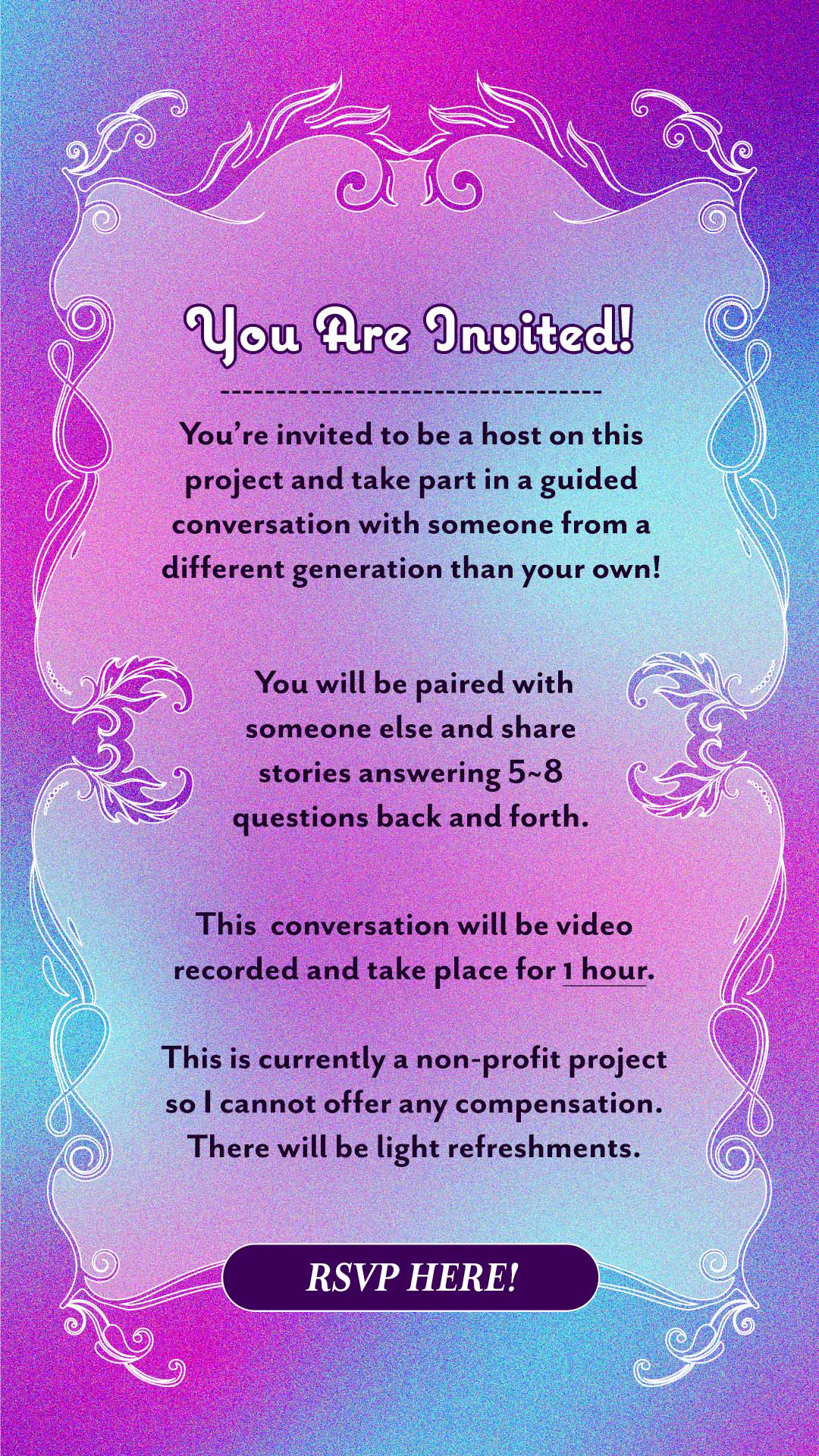 (fig. b.) I created a digital brochure for invited hosts that described the background, how interviews would be handled, and intended outcomes of the project.