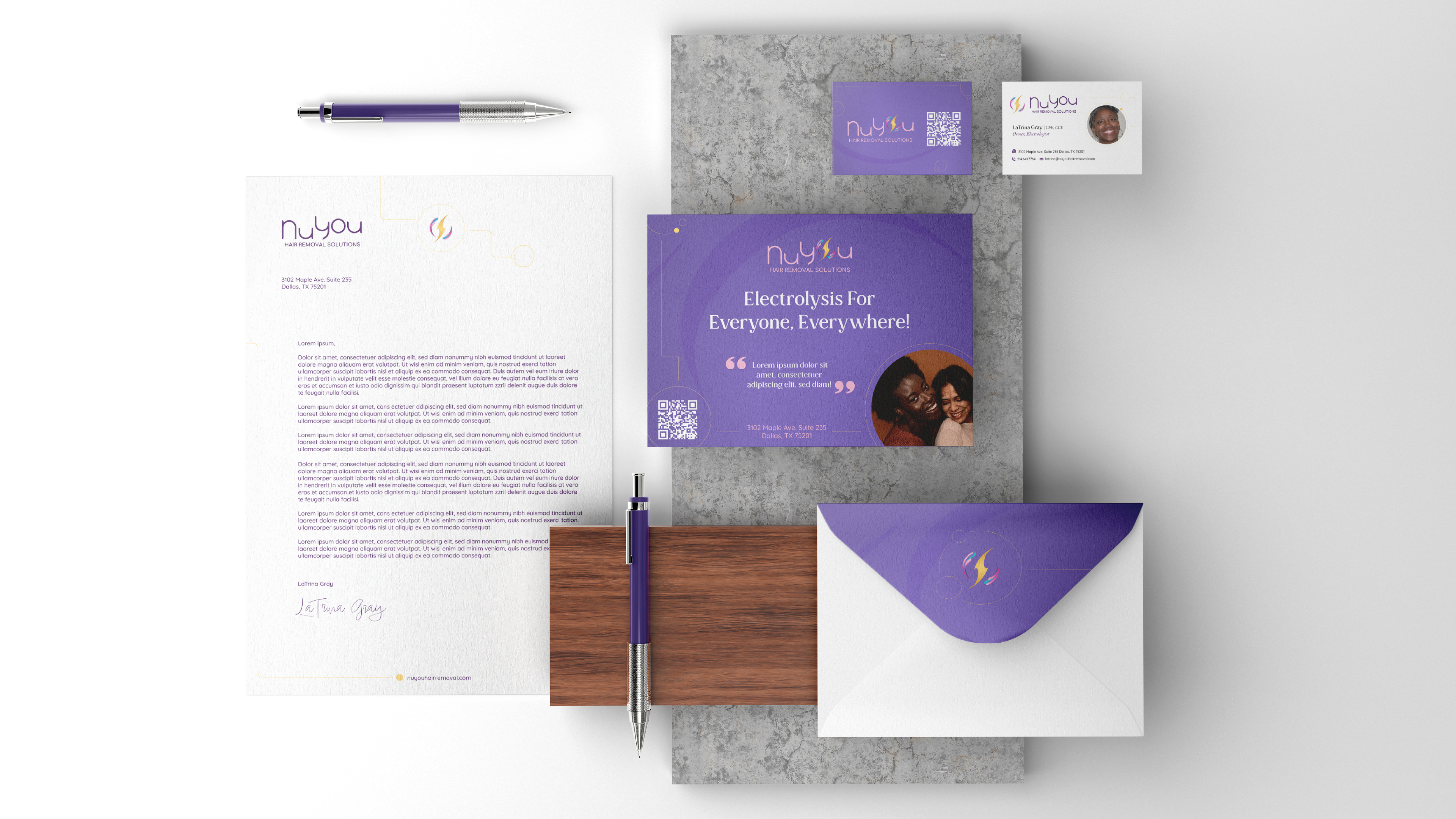 LaTrina, an electrologist, wanted a rebrand for her private electrolysis studio. In our initial consultation she expressed wanting to incorporate an electricity symbol along with brighter colors and continued involvement of curves.